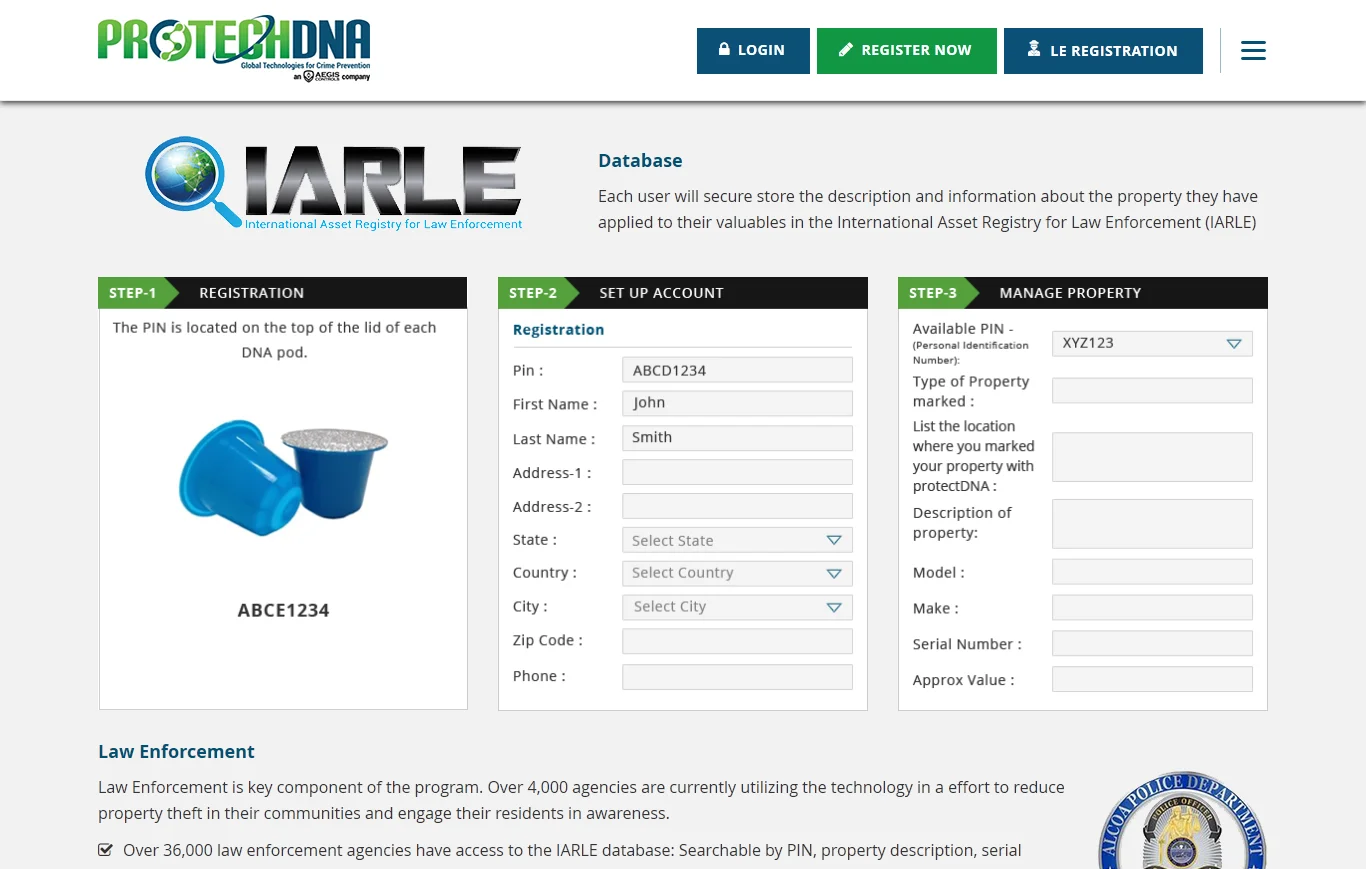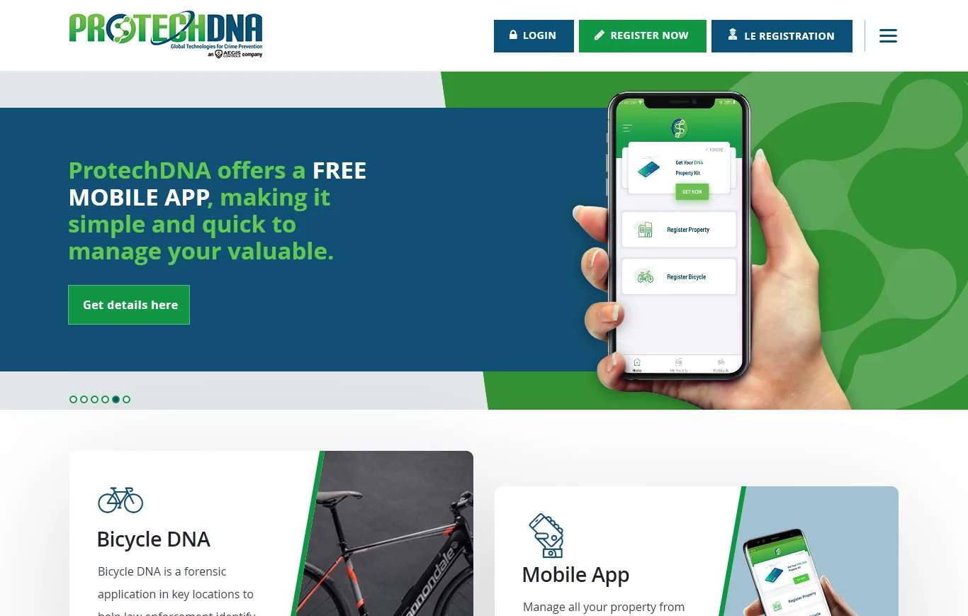 The current booming technology which ensures in reducing thefts through our personal code embedded on our valuables. The entity is partnered with the law enforcement agency which has access to Users' contact database. The user can register details of their valuables and law enforcement team has access to it. ProtechDNA has tie up with insurance firms too. ProtechRkidz ensures in child safety which uses location beacons to connect with schools, parents and children. The key tools used for whole security modules are