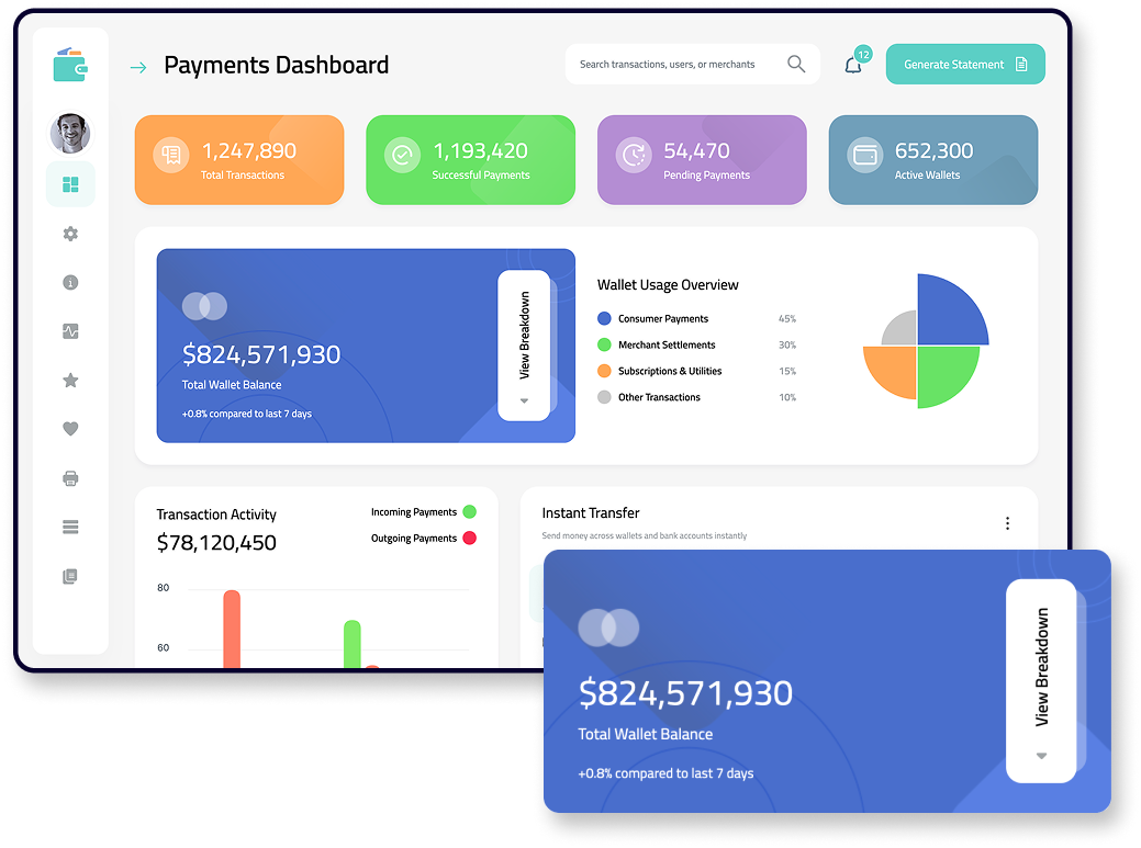 Serve consumers, merchants, and enterprises with smart payments, automated processing, and real-time digital wallet capabilities.