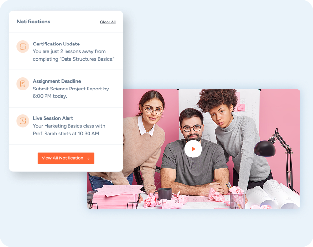 Build a centralized, AI-driven LMS for learners, instructors, and organizations. Deliver courses, track performance, and enable personalized learning at scale.